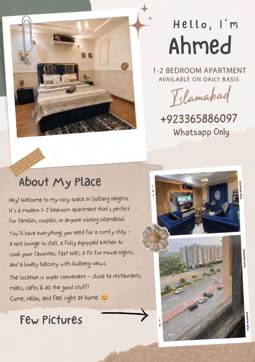 Luxury 2BR Apartment Gulberg |Netflix|WiFi|Balcony