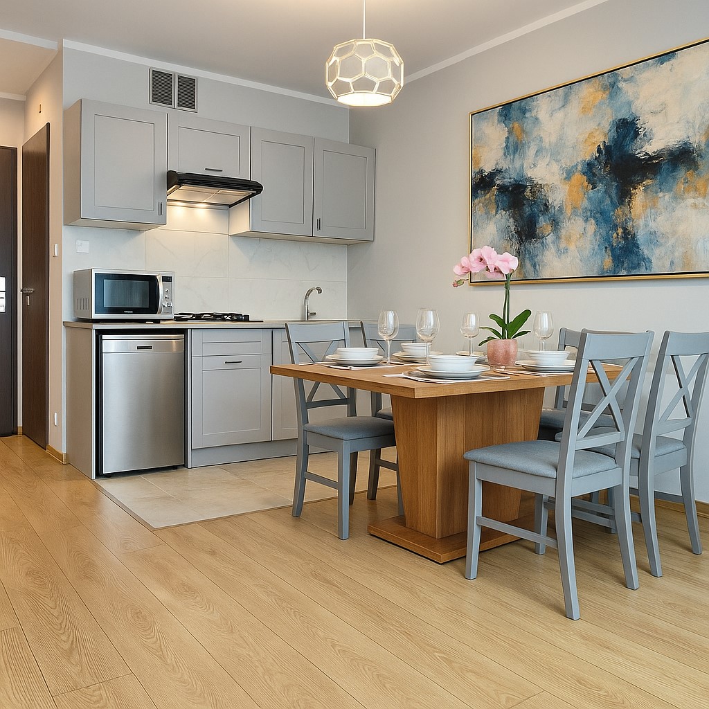 We present the latest apartment in our network. Ap. MAGNOLIA 3 is an apartment with an area of 43 m2, located in a beautiful modern building located a 10-minute walk from the Market Square. This is an absolutely comfortable and very cozy apartment for up to 5 people. It's a great solution for a family of several people, or a group of friends who value comfort, comfort, and privacy.
