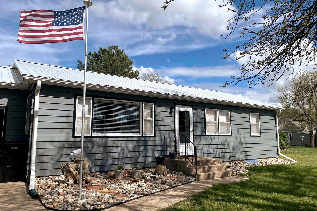 Clean and cozy home with all the amenities including three bedrooms, two bathrooms, fully equipped kitchen, and large covered front porch. Off-street parking for your vehicles and boats including power to recharge your batteries. Located in town less than a mile from North Shore Marina at Harlan County Reservoir. Nearby recreation includes all lake activities, trails for waking and UTV’s, golfing, & good small town marinas, bars, music & food. The blanket of stars at night are not to be missed.