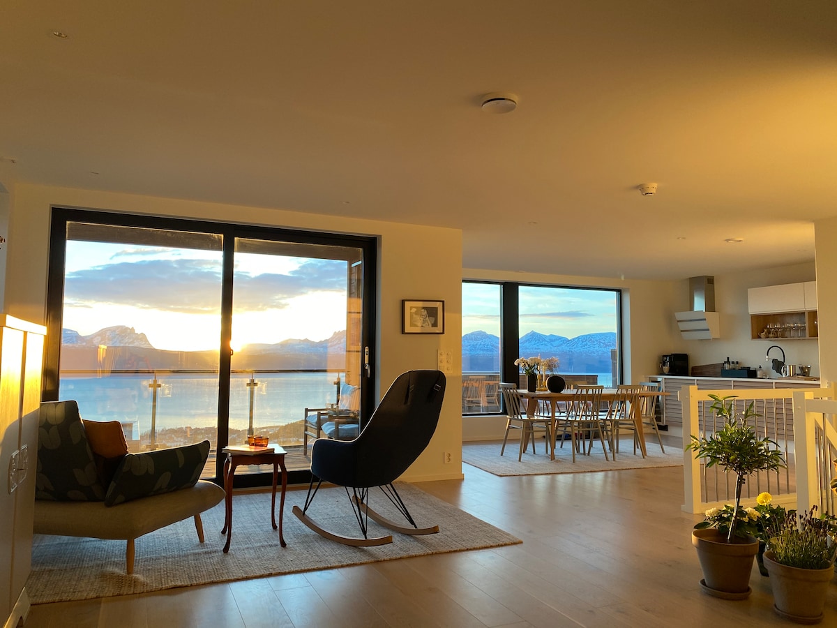 Quiet neighborhood with amazing garden and outdoor area. View of both the fjord and the mountains where the Alpine World Cup is held in 2029. The house is newly renovated and offers luxurious standard with 180 sqm divided over 2 floors. Bedroom to bathroom on both floors. Downtown in the heart of Narvik, with only 3 minutes walk to the nearest grocery store. Amazing nature experiences in the ski town of Narvik. Possibility to rent a family car for an additional fee.
