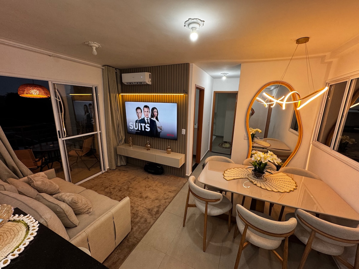 This modern 2-bedroom 2-bedroom apartment is located in one of the best regions of Goiânia , offering comfort and practicality for your stay. And the best: it is just 4 minutes from Goiânia shopping, with easy access to local restaurants, shops and attractions. The apartment is on time to offer everything you need for a comfortable stay: AIRFRYER ° MICROWAVE; KITCHEN UTENSILS WASHING MACHINE HAIR DRYER IRON FANS TOWEL