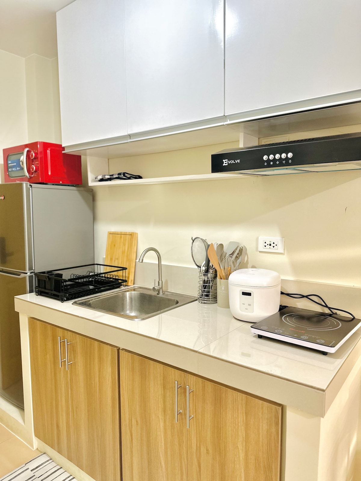 A studio condo unit at Marina Spatial, Dumaguete City—located near the iconic boulevard and Escaño Beach. It is at the heart of the city's lively dining scene and vibrant nightlife. This minimalist space with light interiors offers everything for a comfortable stay: a full bathroom, WiFi, TV, essential kitchen appliances and utensils, and cooking is allowed. Guests can also enjoy condo amenities including a swimming pool, gym, children’s playground, and an activity room with billiards and darts.