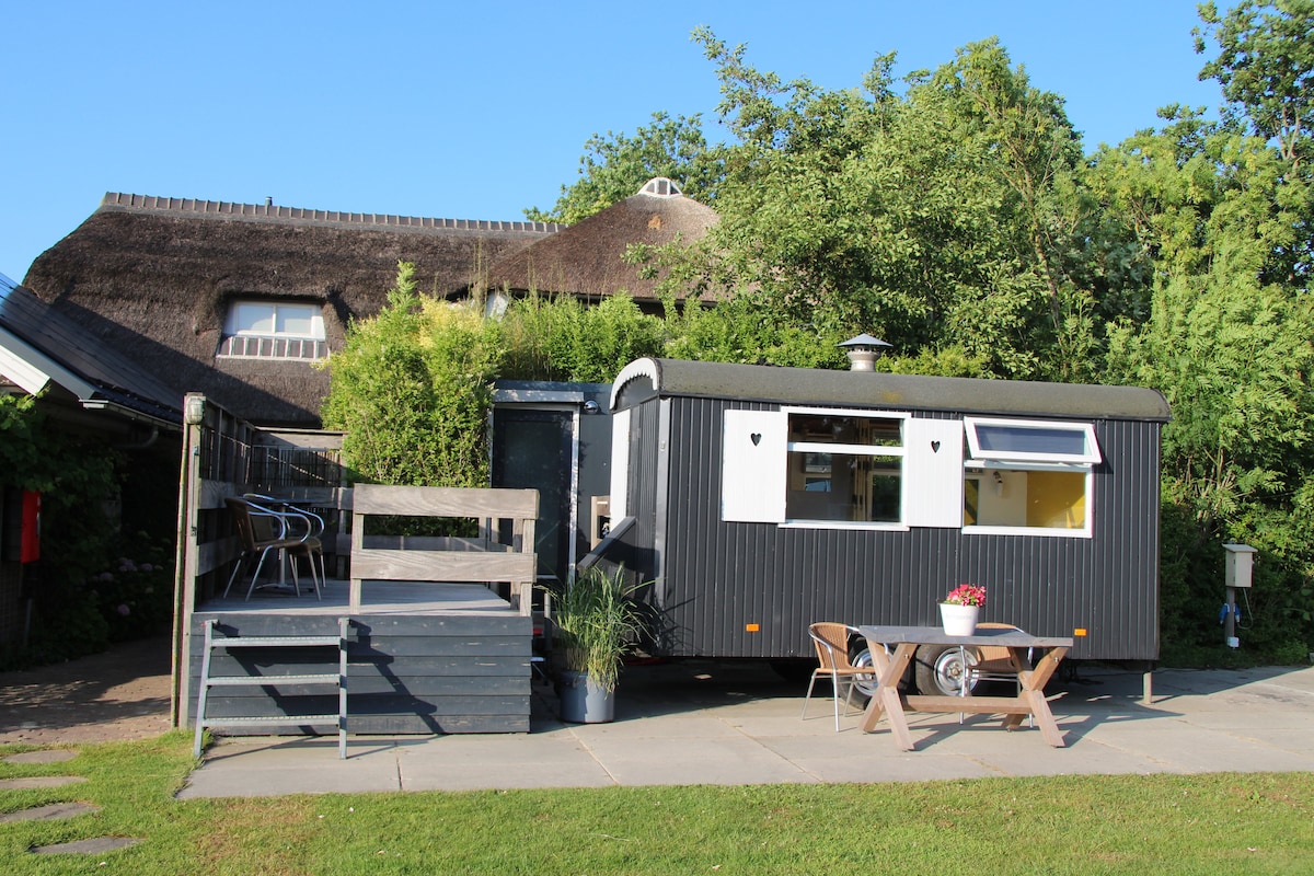 Romantic fully insulated gypsy wagon in the countryside – close to Amsterdam Looking for a unique overnight stay for two? Our charming gypsy wagon is located in the peaceful outskirts of Amsterdam, surrounded by meadows, birds, and silence. A cosy spot where you can relax together, far from the hustle and bustle, yet with the city within easy reach.