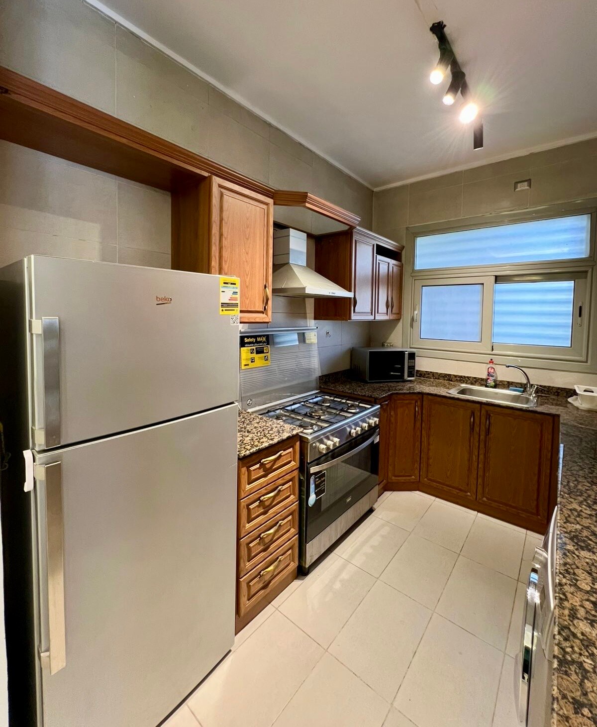 Two-bedroom apartment, including a master bedroom, featuring an open view and a beautiful garden view. The apartment is finished and furnished in a modern style, offering comfort and elegance throughout. It includes 3 bathrooms, a fully equipped kitchen, a spacious reception area, and a balcony overlooking the garden. Ideal for a relaxing stay in a quiet and well-maintained environment.