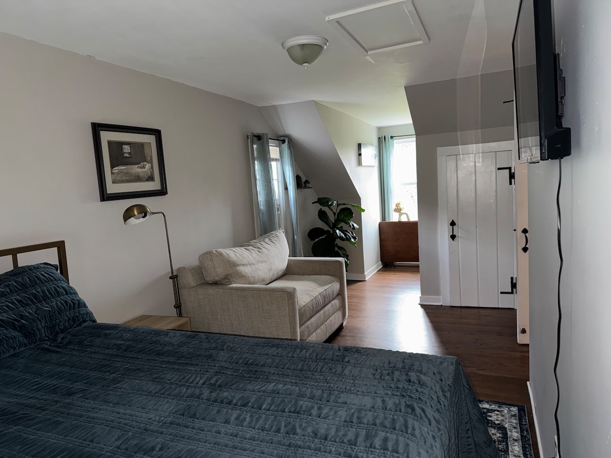 ENTIRE 2nd FL for up to 2️⃣ adult guests ONLY 2️⃣ Rooms➕Skylit Full Bathroom Exclusive Driveway Parking➕locked entrance leading airbnb, separate from full-time renters on 1st FL Heat & Cool: wall-mounted AC➕portable Dyson ➕ Central AC w/2 sensors - host adjustable remotely TV is Screen only, works with Bluetooth & Chromecast, NO Services Kitchenette: heat/store food (NO cooking), allows affordable stay in affluent Fairfield Town Professional Clean Service Host Assistance Virtually