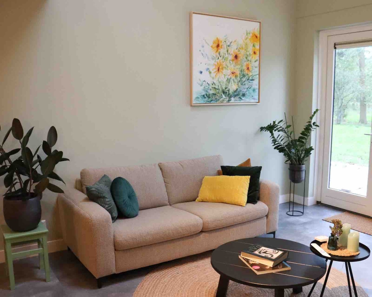 Our B&B is equipped with all modern facilities such as a modern kitchen, Philips Hue lighting, smart TV and Quooker. The cozy veranda is complete with a luxury Jacuzzi and wood stove. The B&B with large private garden and unobstructed view is completely shielded from the farmhouse by a fence and is only accessible to you as a guest. From the Finnish barrel sauna on the adjacent terrace, you can look out over the picturesque city meadows. A delicious breakfast of your choice is optional.