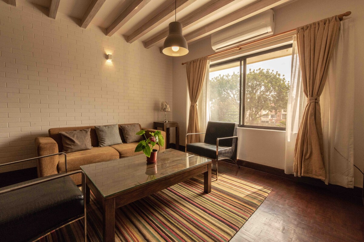Cozy 2 bedroom apartment near Swayambhu offers a peaceful escape just minutes from the heart of Kathmandu. With a private balcony garden, warm ambient lighting, and stylish modern décor, it’s the perfect stay for couples, solo travelers, friends, family or business guests looking for comfort and convenience.