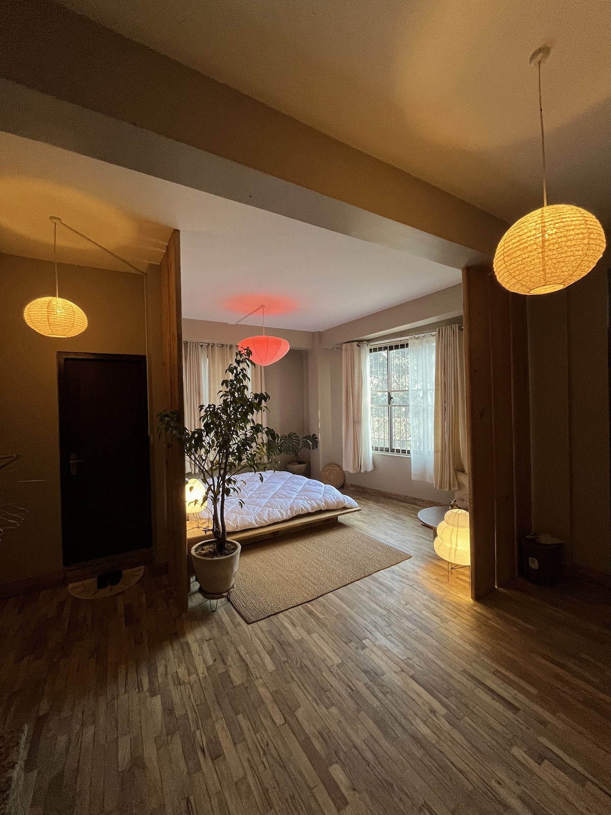 Cozy 2 bedroom apartment near Swayambhu offers a peaceful escape just minutes from the heart of Kathmandu. With a private balcony garden, warm ambient lighting, and stylish modern décor, it’s the perfect stay for couples, solo travelers, friends, family or business guests looking for comfort and convenience.