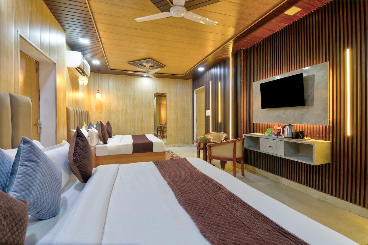 Enjoy a stay that blends modern design with cozy comfort at Sandane Homes. This designer room offers elegant interiors and thoughtful amenities—perfect for a stylish yet relaxing getaway in Greater Noida.