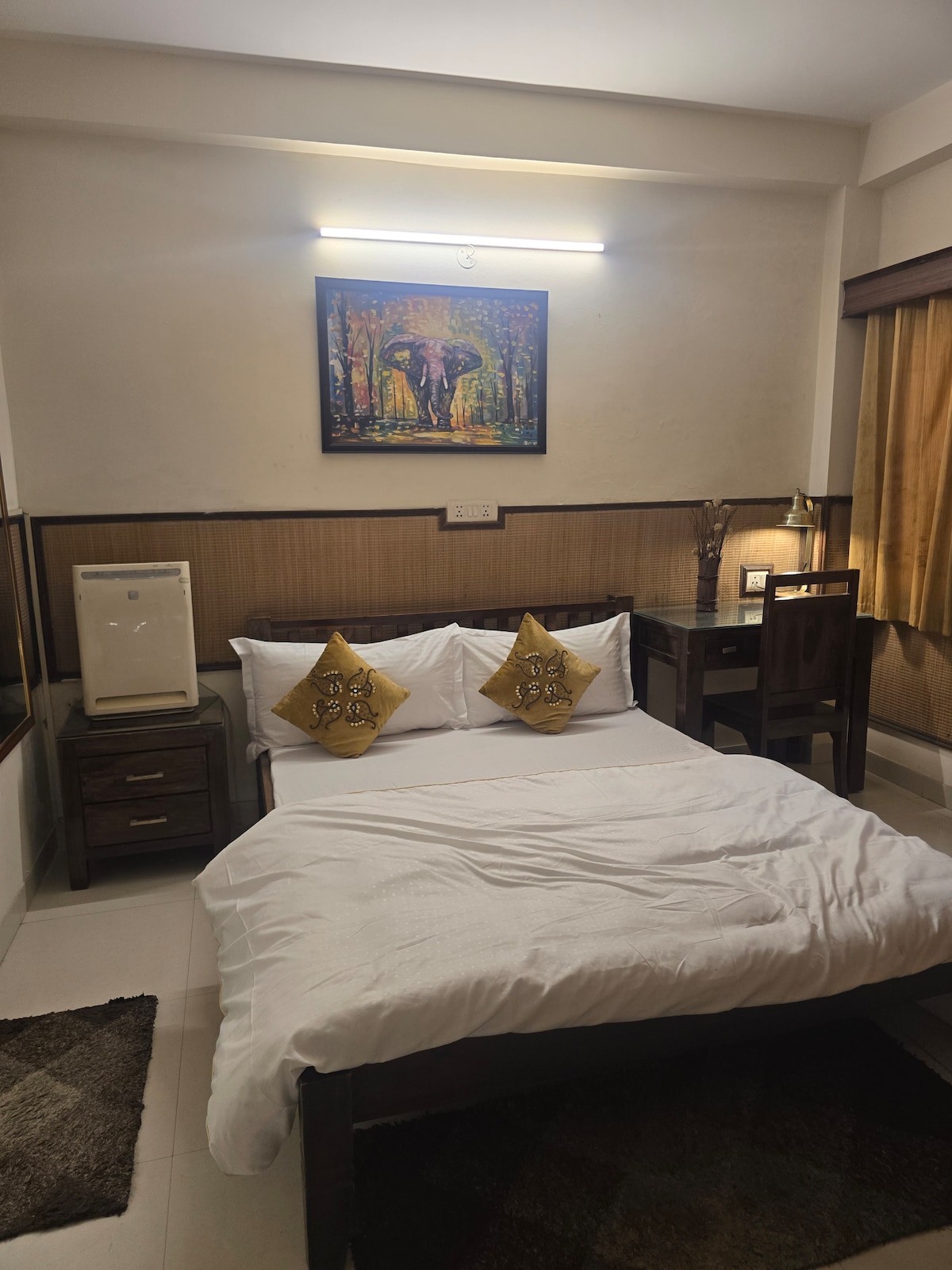 Strategically located in the heart of Gr. Noida, nearby the Expo Mart, Saffron Inn redefines luxury living with its unmatched blend of convenience, comfort and sophistication. It is a boutique Hotel offering Luxury Rooms with all the essential amenities needed for a pleasant stay. This property offers Spacious Rooms, Free Wi-Fi, 24/7 Room Service, Air Conditioning, Safety and Security, free Car Parking and many more amenities. Book now for an unforgettable stay!