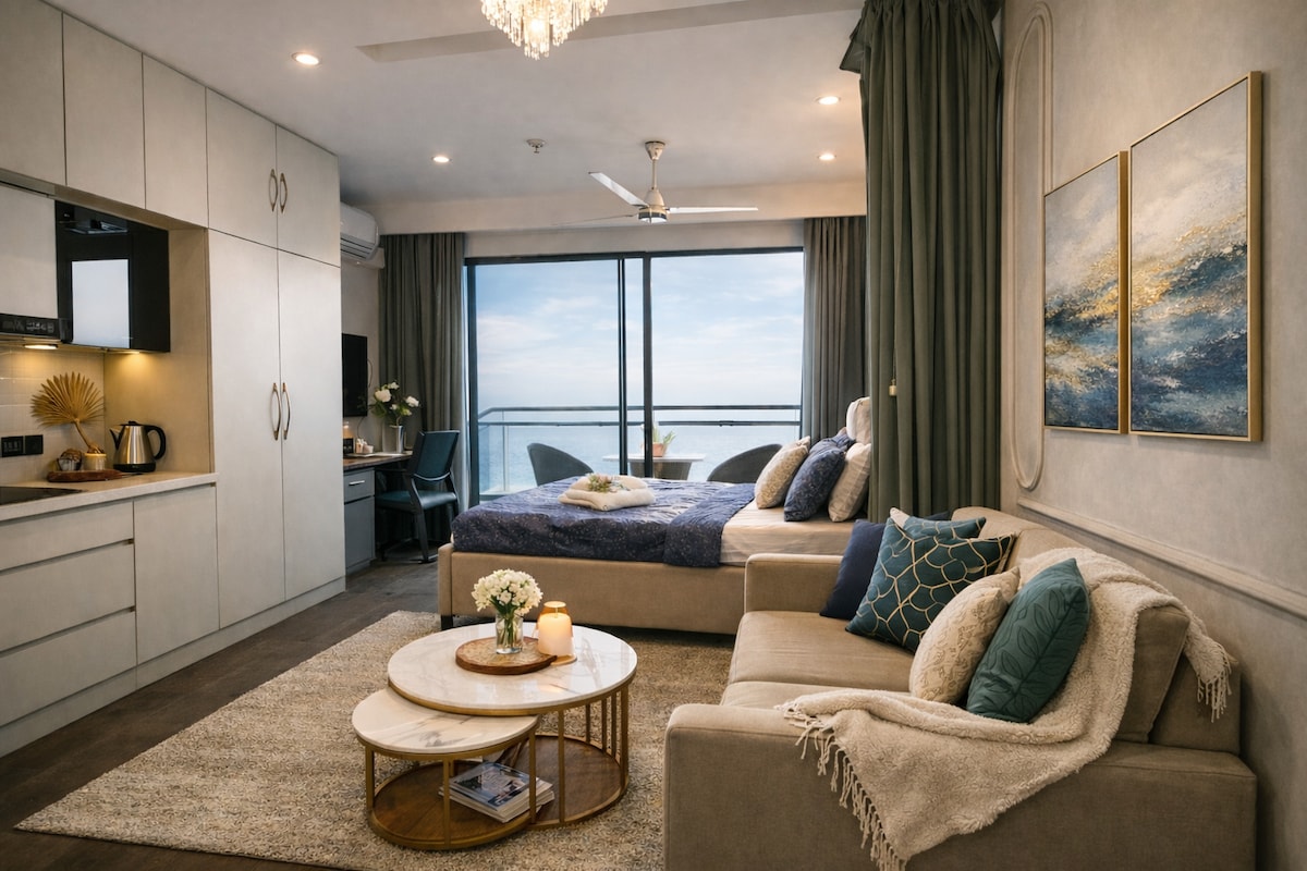 41st-Floor Ultra-Luxury Apartment | Yamuna River View • Elevated high-rise living in the tallest tower of Delhi NCR • Panoramic Yamuna river views from a premium floor • 200 Mbps high-speed Wi-Fi — ideal for remote work & long stays • Seamless food delivery (Swiggy, Zomato & more) • Easy cab access and close to key city attractions • In-complex conveniences: grocery store, salon, cafés & restaurants • Parking available outside the complex