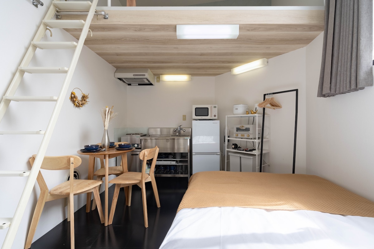 This is a twin room apartment located just a 2-minute walk from Koenji Station, offering convenient access to Shinjuku via the JR Chuo Line in just 7 minutes. We combined modern and creative visuals with Japanese taste to design a room resembling an atelier. Additionally, this room is situated on the 4th floor, designed to allow plenty of natural light in through the windows.