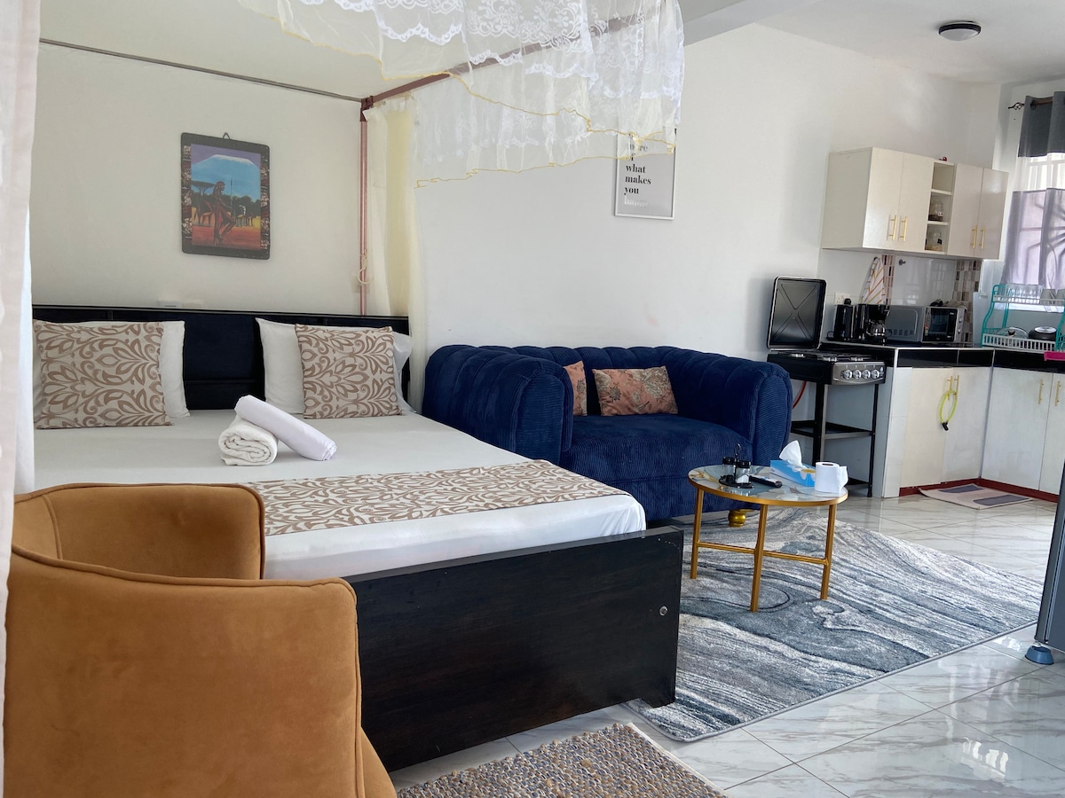 This 1-bedroom apartment is a seven-minute drive from the beach and offers a blend of comfort and convenience for your coastal escape. Amenities: ✔ Free On-Site Parking ✔ High-Speed Wi-Fi & Netflix ✔ Prime Location: * 7-minute drive to the Beach * 7-8 minutes to City Mall & Nyali Center * 7-10 minutes to top resorts, including PrideInn Paradise, Sarova Whitesands, Neptune Beach Hotel, Voyager Beach Resort, and more The ambiance and view make it the perfect spot to unwind under the sun.