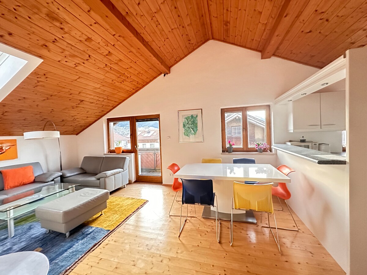 Coziness, the airy lightness of the atmosphere, a quiet, relaxing setting amidst a striking garden, the stunning panoramic views, as well as creativity and originality characterize this accommodation. The 45m² mansard, part of a duplex apartment, is the perfect retreat after an eventful day in the mountains, on the ski slopes or after a stay in the inviting pubs and cultural venues of the Alpine town of Innsbruck.
