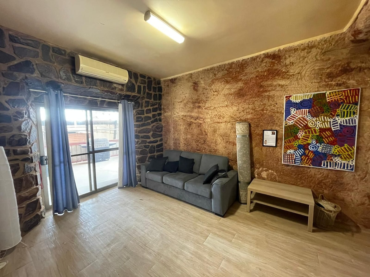 Have this self-contained cave to yourself to refresh after a full day of exploring the unique attractions of Coober Pedy. Free Wi-Fi and tourist info. It's like nowhere else! Sit outside in the evenings to star gaze. The 2nd queen bed or the single bed is dug into the wall for a peaceful sleep underground! Guest review: "This space was just as described and for those of you that are claustrophobic, me too, not at all!!!! " (Studio = one open space). NO PETS unless approved after chat with Ali
