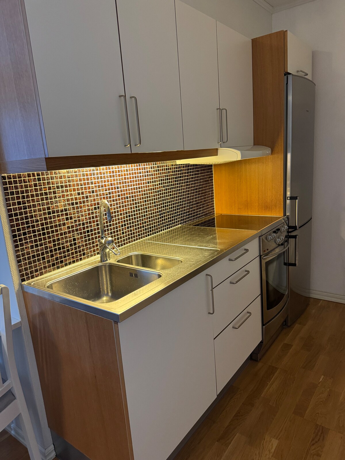Welcome to a cozy newly-built guest house. It is located on a plot with a nice view of fields and proximity to the forest. There is access to a large garden with outdoor furniture, barbecue Trampoline, playhouse and barbecue area in the forest if you want. There is a very nice bathroom with shower and toilet. There is a kitchenette with cooking facilities, fridge with freezer compartment, stove and dining area for 4-5 people. The small bedroom has a wide single bed and a loft bed with ladder. Sofa bed in the large room