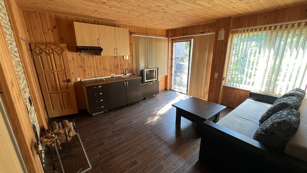 🌿A cozy house with a sauna in the garden — rent by the day. A detached house on the territory of a private sector. The house was built as a bathhouse with a lounge, and is now available for rent — the perfect place to relax for two or a small group. What you can expect: A wood-fired sauna is a real bath with a stove, perfect for relaxation. The lounge is cozy, with a folding sofa and eco-friendly wooden finish.