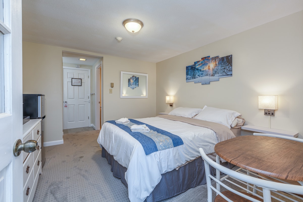 Welcome to Village Place at the Eastern Slope Inn! Must be 21 to check-in, $40 authorization taken at check-in (not an actual charge), no cats. Two double beds and a private bathroom. IF YOUR PUP IS JOINING YOU, please provide advanced notice, a $25/night pet fee for the first 4 nights ($100 max), RABIES RECORDS, and a crate if you must leave them behind. One dog is permitted per room, no cats. Halfway between Main Street and Cranmore Mountain, you will be walking distance to it all!