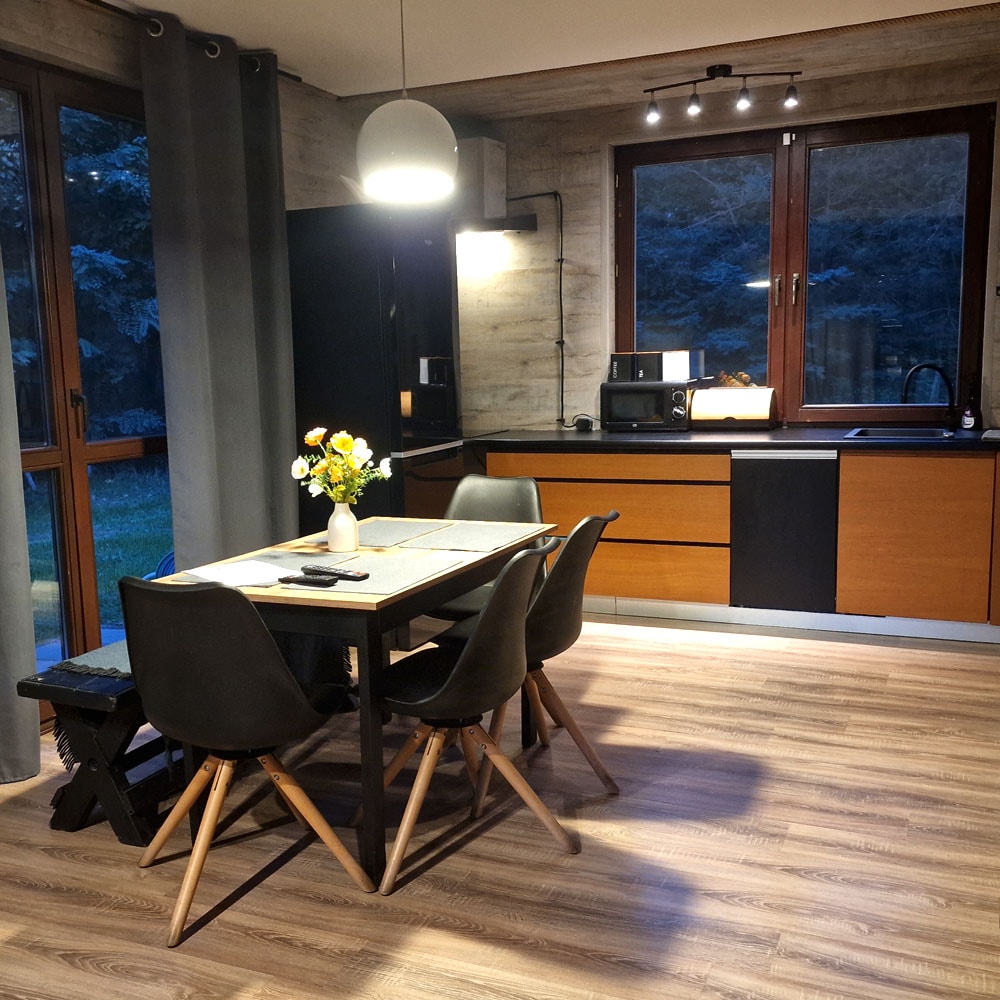 Welcome to the Leśne Ukojenie cottage – a perfect place to relax in the heart of a pine forest. We offer comfortable interiors, full of nature and peace. There is a private wood-fired Jacuzzi tub on the premises, where you can relax while listening to the rustling of the trees. The cottage, located on a private fenced forest plot, provides full privacy, and the surrounding forest creates a unique atmosphere of respite. It's the perfect place to escape from everyday life.