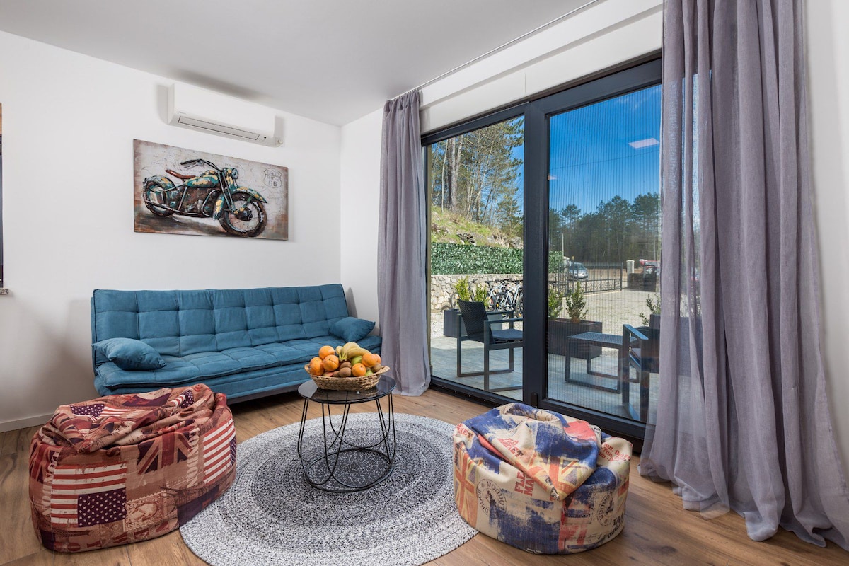 Apartment Tilia is great place for comfortable acommodation in beautiful location for quiet retreat or active holidays in nature. This unique apartment has two bedrooms, living room with TV, dining room, fully equipped kitchen and bathroom. Here you can enjoy shade of private stone roofed terrace with view on surrounding nature. Tilia apartment is the place to enjoy nature and unique mix of Mediterranean and Alpine climate or as a gataway for exploring Istria and Kvarner region.