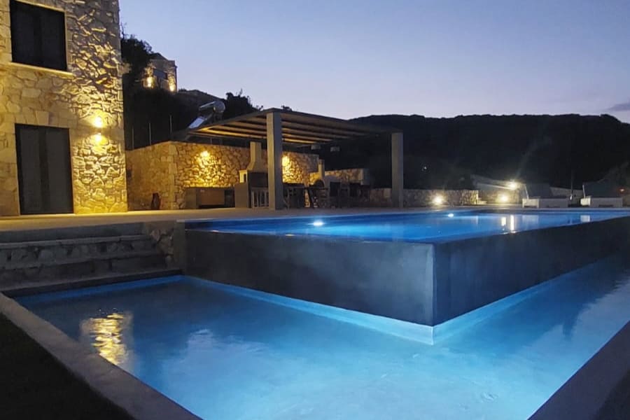 The traditional stone villas, Orfos Villas, have four villas that accommodate 4-6 persons. Villa JOGIA offers a private pool and is fully equipped to meet your every need. The villa has been carefully decorated with a rich earnestness for detail using handmade and traditional furnishings to give a unique style and high standard of comfort. Located in Agios Nikolaοs in Volimes one of the most idyllic locations of the island and offers magical views over the crystal clear waters of the Ionian Sea.