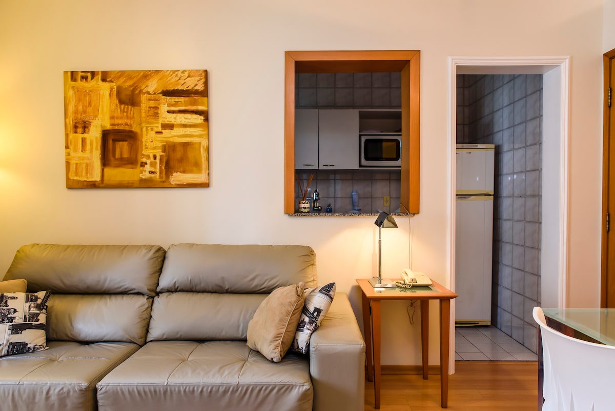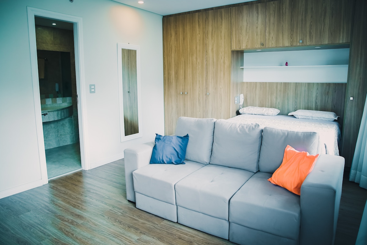 Flat completo e confortável em hotel alto padrão