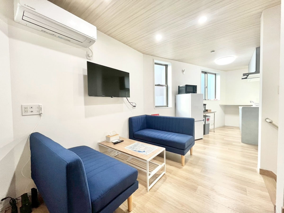 This listing is ideal for families and groups to enjoy medium to long-term stays. This apartment hotel opened in 2023 and is located in a quiet residential area close to the city center. There are waterfronts, parks, and shrines nearby. The spacious 40 ㎡ interior features two full-size beds, bunk beds, and a sofa bed, accommodating up to five adults. (Infants under 2 years old sleeping in the same bed as their parents stay free.) There is a compact kitchen where you can cook, a fully automatic washer and dryer, a spacious bathroom, and a separate toilet. There is also an Android TV and free WiFi, so it is a good environment for spending time indoors or working. You can also relax on the rooftop open to guests. Check-in is done using an automated system with a tablet, so you don't have to worry about late night check-in. The door is managed by the latest touch key system. Located a 5-minute walk from the nearest station (Sumiyoshi Station, Hanzomon Line, Toei Shinjuku Line), there is a supermarket nearby. Relax with the whole family at this peaceful place to stay.