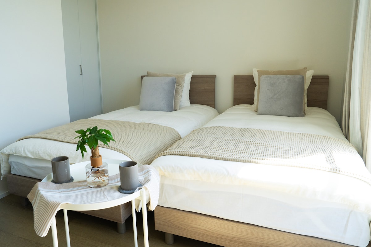 入住這間位處中心地段的房源,全家到哪都方便。 房內配置兩張加大雙人床,適合家人、朋友一同入住 床距舒適,動線保有獨立空間。最多可住5人 開放式廚房備有電磁爐、鍋具與碗盤,想吃家常菜、日式簡單料理都不是問題 吧台連接生活與用餐空間,不論是一杯早晨咖啡,還是一頓晚餐,一切都剛剛好。 洗手台與衛浴獨立設計,幾個人一起住也能保有自己的步調 提供藍芽音響,在日本的夜晚聽著音樂、泡個熱水澡是旅途中最放鬆的片刻。 房內備有投影機,可輕鬆連接常用的數位串流平台 洗衣機、空氣清淨機、熨斗與寬敞衣櫃一應俱全,你需要的,我們都準備好了 空間剛剛好,適合一個人靜靜地在吧台工作,也適合和朋友或家人一起住上幾天 自在相處,各自舒適。