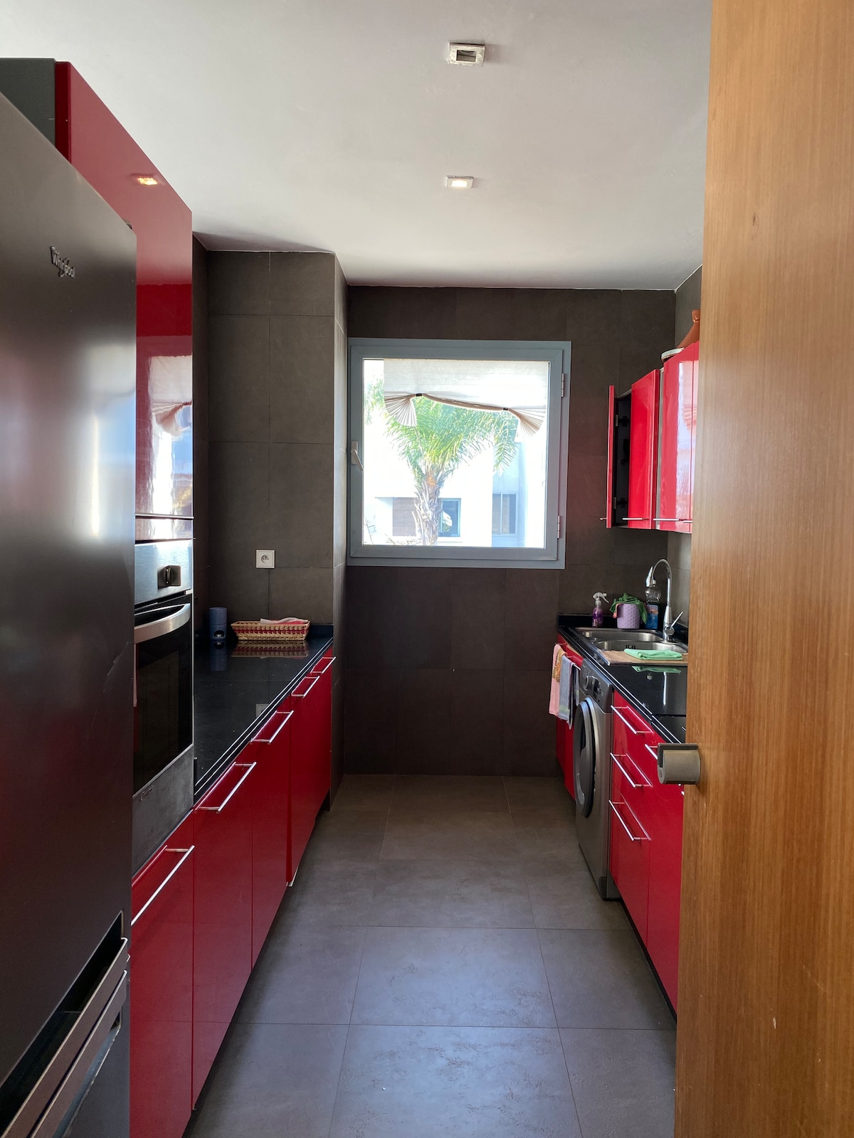 Elegant apartment 20 minutes from Rabat, on the 3rd floor with elevator, offering all the comforts necessary for a pleasant stay, a relaxing getaway or a business trip, - Beach/pool access to cool off on sunny days - Large open terrace with accordion windows, ideal for relaxing, reading or sunny breakfasts - Comfortable bedroom, quality bedding and practical storage - Equipped kitchen to cook like at home - Secure parking