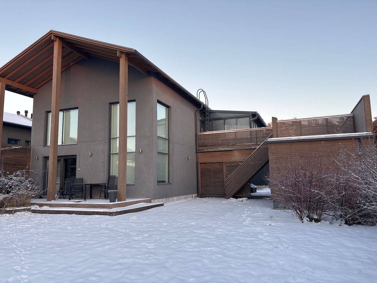 Peaceful stay near Oulu city center – private house with sauna and carport. Enjoy privacy in this detached house built in 2024, located in the peaceful Karjasilta area, just 2 km from Oulu center. This house has no shared walls or passing traffic, offering true quiet. Relax in your private sauna and spacious bathroom with two showers, or book the outdoor hot tub (€60 / 2h). Sleep comfortably in a 160 cm loft bed or 140 cm sofa bed. The house includes a kitchen, Wi-Fi, Smart TV, and free parking.