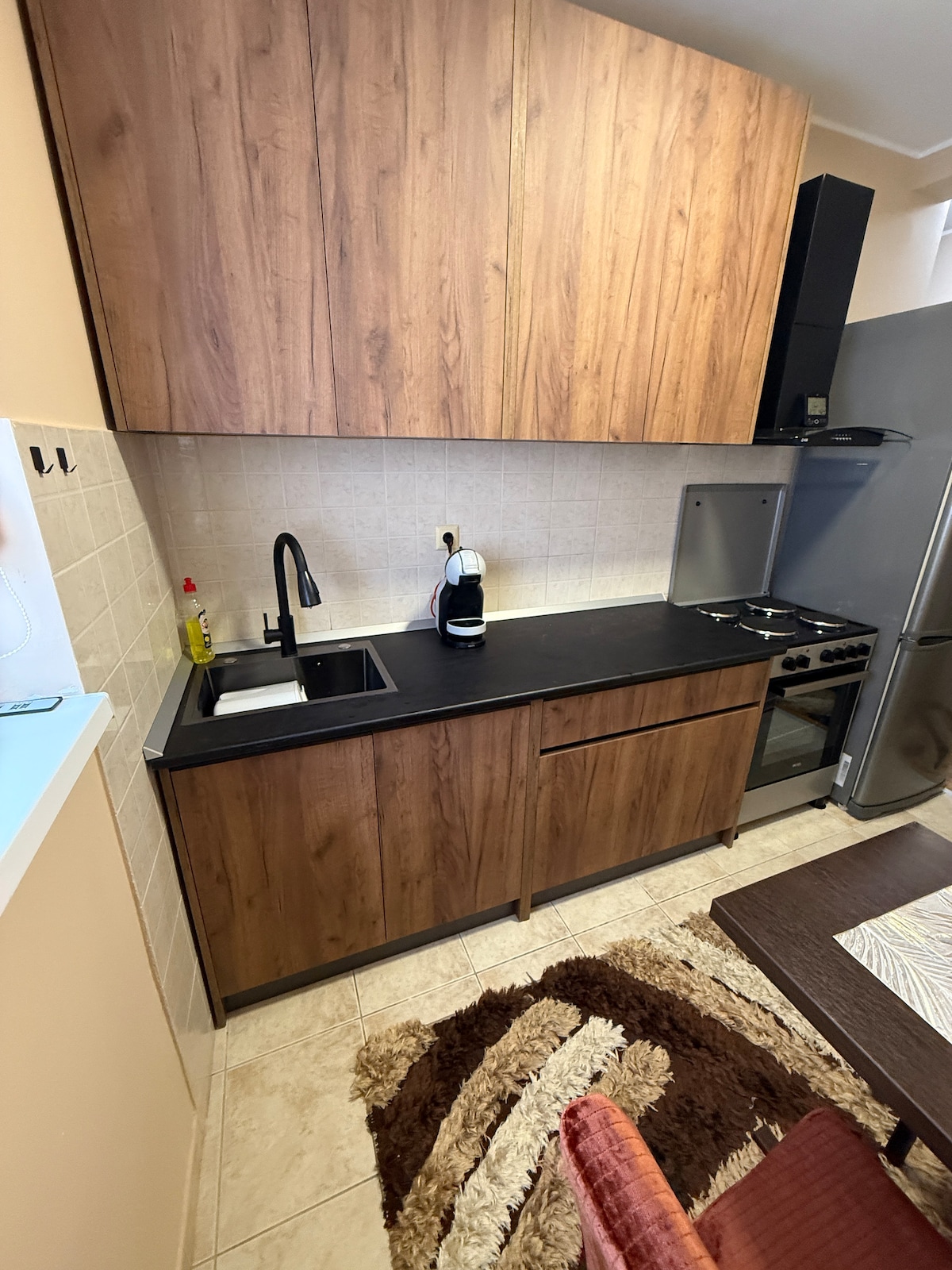 The apartment is full renovated a few months ago and everything is brand new. In the bedroom there is a large comfortable double bed and one big sofa bed in the living room. All in discreet led light. In the kitchen you can enjoy a modern flat-screen cooker, oven, refrigerator with freezer, dishwasher and washing machine and a large bar table. The bathroom is glazed with marble ceramics, it is very compact and clean. The bathroom is equipped with a hairdryer, towels, hygiene sets.