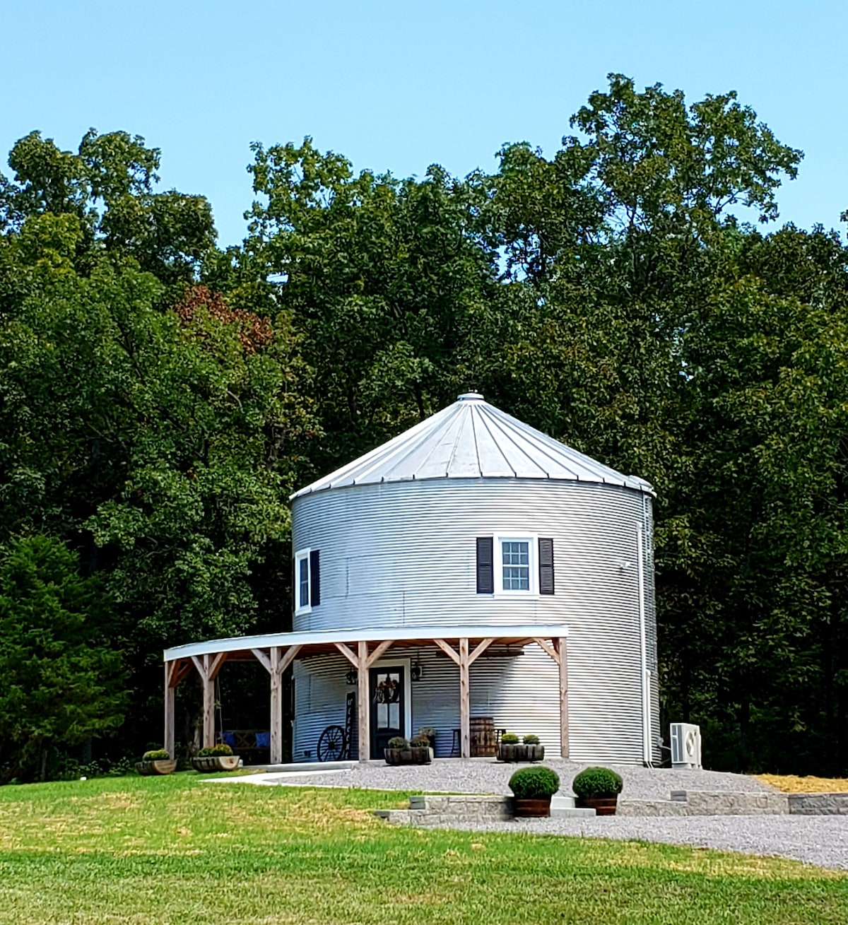 Plan a memorable stay in an unforgettable location at our creek side silo that was once used on a farm in Arkansas to store grains and crops. This quiet, peaceful country setting is all within a short driving distance of state parks, hiking/biking trails, and historic Caledonia which offers quaint shops and fun events. Sunset at the Silos lives up to its name with views of sunsets, pastures of cattle, and if you're lucky deer! The silo may be just 24 feet across, but everything you need is here!