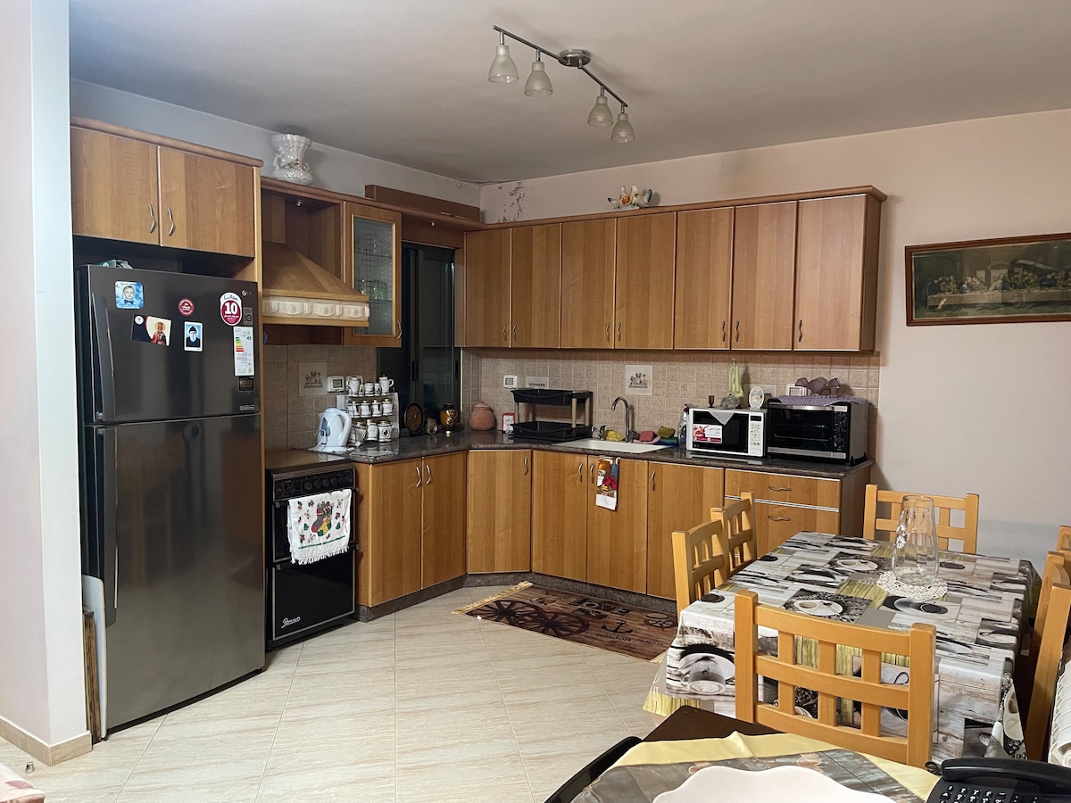 Beautiful and airy new build near the center of Bethlehem next to a friendly family home. The flat has one bedroom that can be used as a twin or a double, a large open plan lounge and fully equipped kitchen, and a modern bathroom. The flat is extremely secure, set away from the road with metal shutters so it is extremely quiet. It is beside our home, we are a friendly multilingual local family who love welcoming travelers, if you would like, Sahar can cook you her delicious home cooking.