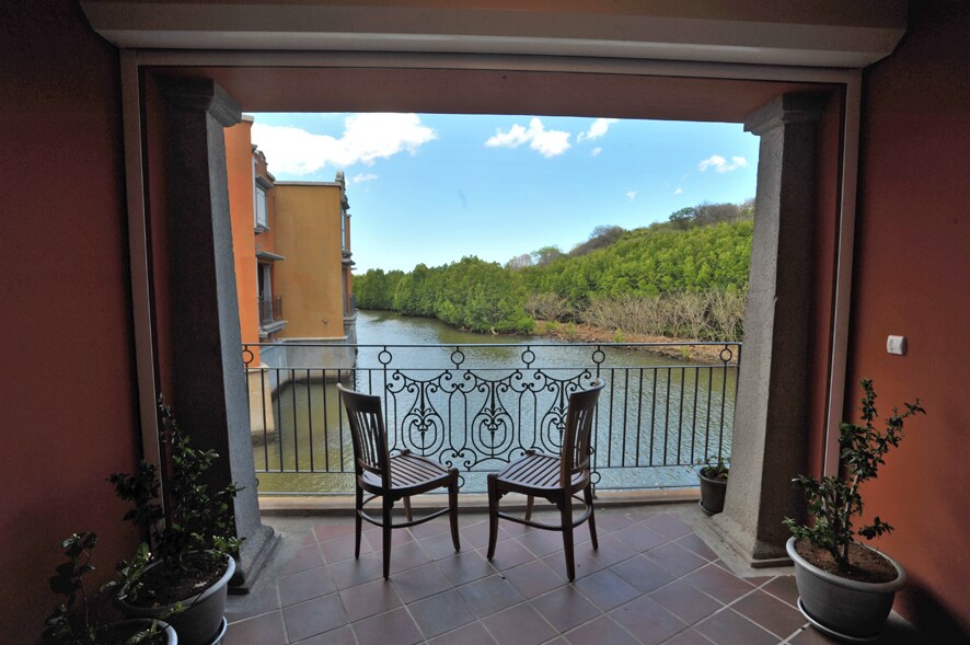 Eccellente villetta a Mauritius, vista mare dalla camera da letto, vista laguna dal solotto, nella costa nord occidentale dell'isola. Sulla laguna, a 300 metri dalla spiaggia. Da 2 a 4 persone. Complesso di lusso di ispirazione veneziana, Ac.2 Piscina, kinder garden .. 2 camere da letto, 2 bagni, 1 soggiorno, 1 cucina, 1 terrazzo