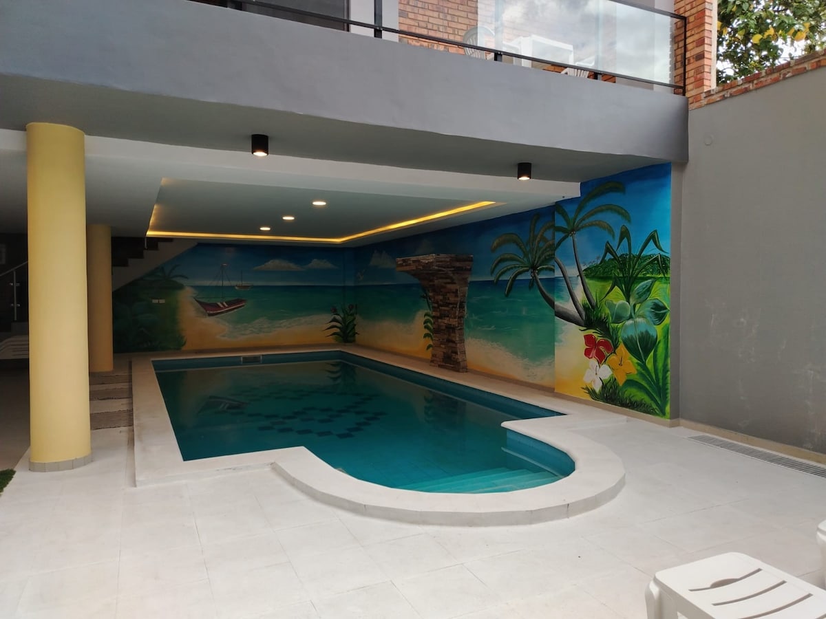 Cozy space ideal for families, with spacious patio, shared pool and spacious rooms. - 10 minutes from Silvio Pettirossi Airport (ASU) - 10 minutes from Paseo La Galería - 5 minutes from Ñu Guasu Park