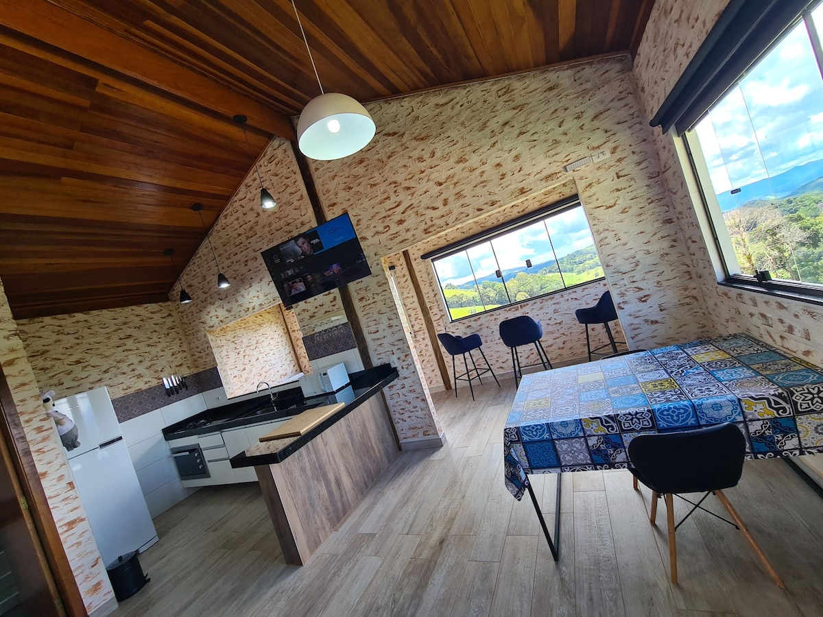 Our Chalet was built in a very strategic location, with an exuberant view and a lot of privacy. The stay is very inspiring and you will certainly connect with nature in an organic way. We want you to have a unique experience in the mountains by staying in a fully Sustainable and Amazing Chalet. We operate in the Self Accommodation style, Guests take everything they want to consume. Bring swimwear to enjoy our Waterfalls and Trails!