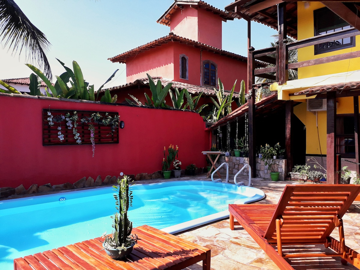 Wonderful house in the historic center of Paraty, 3 spacious suites that can accommodate up to 8 people, beautiful winter garden with mini pool, fully equipped kitchen, washer and dryer, daily cleaning service included. High speed fiber optic wifi (suitable for home office). Air conditioning in all spaces. The daily rate includes a gourmet breakfast served in the main room or in the garden.