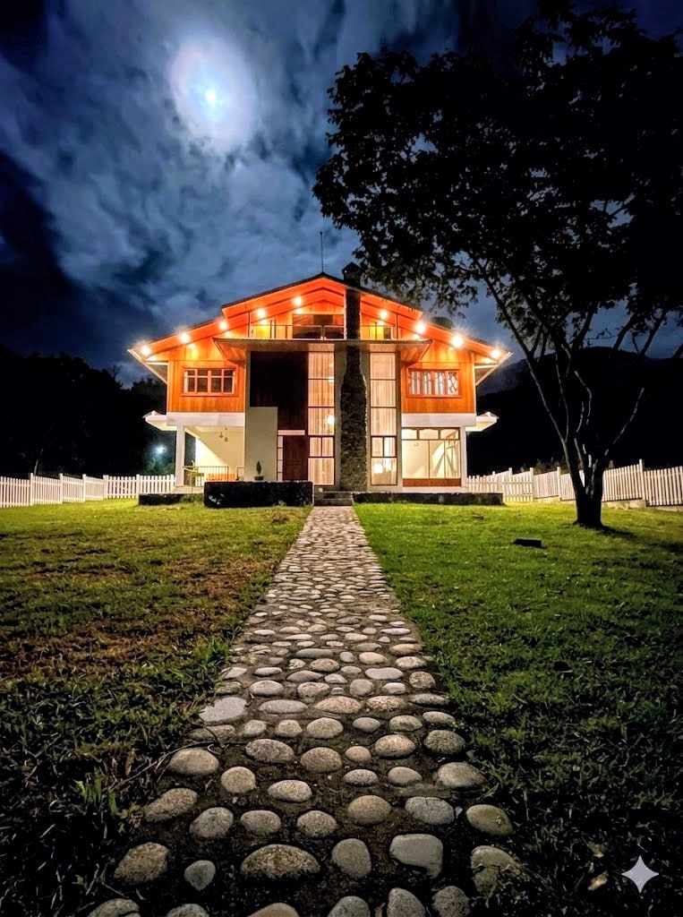 La Posada Blanca is a beautiful country house within an area of 1500m2, located 20 minutes from the Oxapampa square (route to Pozuzo), it is quite spacious ideal to get away from the city and be with family. It is a modern design house inspired by the traditional Oxapampino style, surrounded by nature where you can enjoy with family and friends with the best comfort, ideal to give yourself a break and escape from the city. It can accommodate up to 18 people with prior coordination.