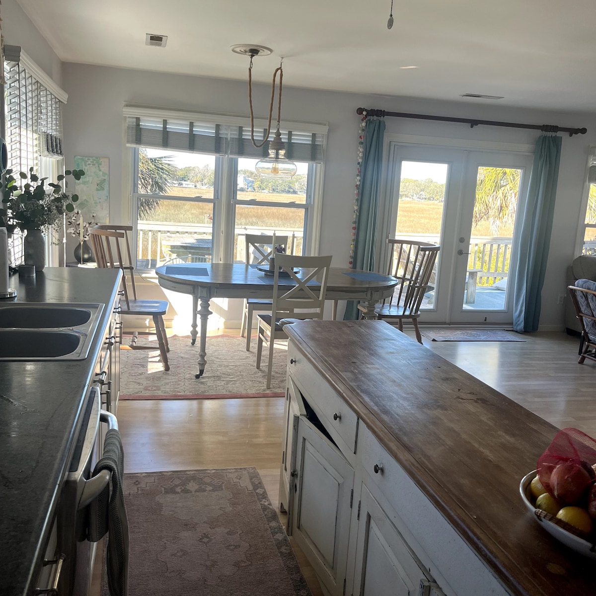 This newly built carriage house is separate from the main house. The cottage is about 1,200 sqft so it very open and spacious and great views of marsh and our tidal creek. We have a separate work area with desk and a massive dinning table if you need more room to work or to gather with friends. Full kitchen, washer and dryer, massive shower, the list goes on. You may not want to leave! Feel free to go sit and have coffee or cocktails on the dock. PERMIT# OP2025-06925