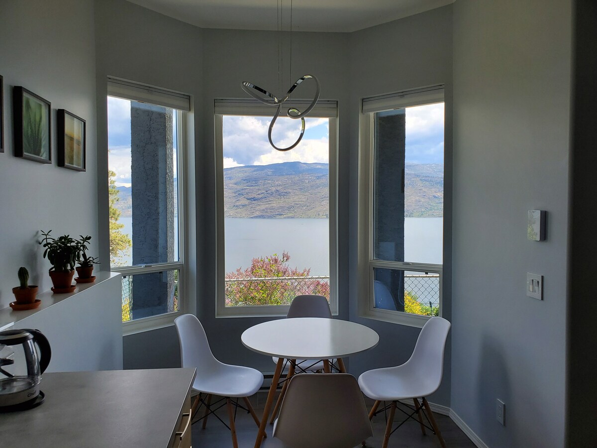 NO CLEANING FEE! If you are here to party, unfortunately this place would not be a good fit for you. This suite has 1 king bed and pull out sofa bed and a cot. This space features subtle uses of color, wood flooring, with outdoor seating area. Stunning views of Okanagan Lake from your private patio - 5-10mins to wineries and golf courses. We are 25 mins to downtown Kelowna. Take a short 8-10mins drive to the Gellatly Aquatic Park or Peachland for some fun beach time. Business #7999