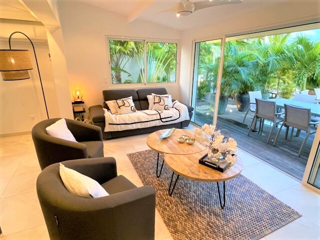 Delightful one bedroom appt. Fully furnished with mid century teak furniture. A spacious 70m2 space with large terrace in a mature tropical garden. A brand new fully equipped kitchen was added in October 2022. Located in trendy and safe Cupecoy. CJ1 is a quiet oasis to relax in the luxurious garden, or head for the the renowned beach of Mullet bay within a 3 minute walk. Supermarkets, gym yoga studio very close by. This is the place to be.