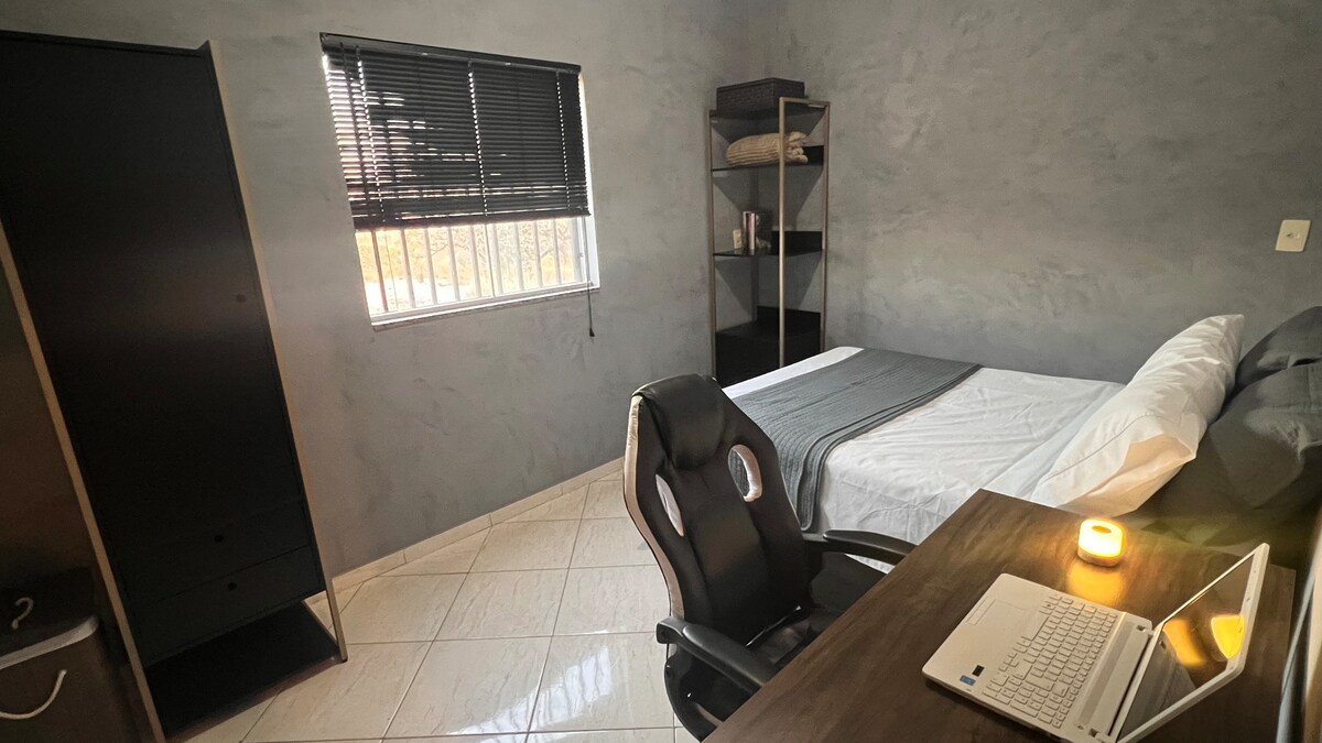 Located less than four blocks from Perdigão's main street and less than 15 minutes from Nova Serrana. There are 3 bedrooms, as follows: Two bedrooms with a double bed in each. One bedroom with a single bed and a floor mattress. Amenities: High-speed Wi-Fi Full kitchen Dining area with table for 6 people. Mobile fans Bed and bath linens