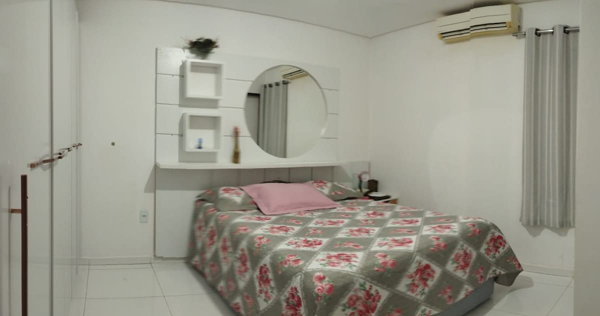 Casa dentro de um condomínio fechado tranquilo com 2 quartos com ar-condicionado. Um ambiente familiar com funcionários de portaria 24h. O condomínio fica colado na avenida principal do bairro, onde existem diversos comércios, mercados, padarias, farmácias, academia, lavanderia, lanchonetes... Além disso, o condomínio fica a cerca de 10 minutos de carro até a orla. Existe uma loja de conveniência 24h dentro do próprio condomínio com vários produtos de mercado.