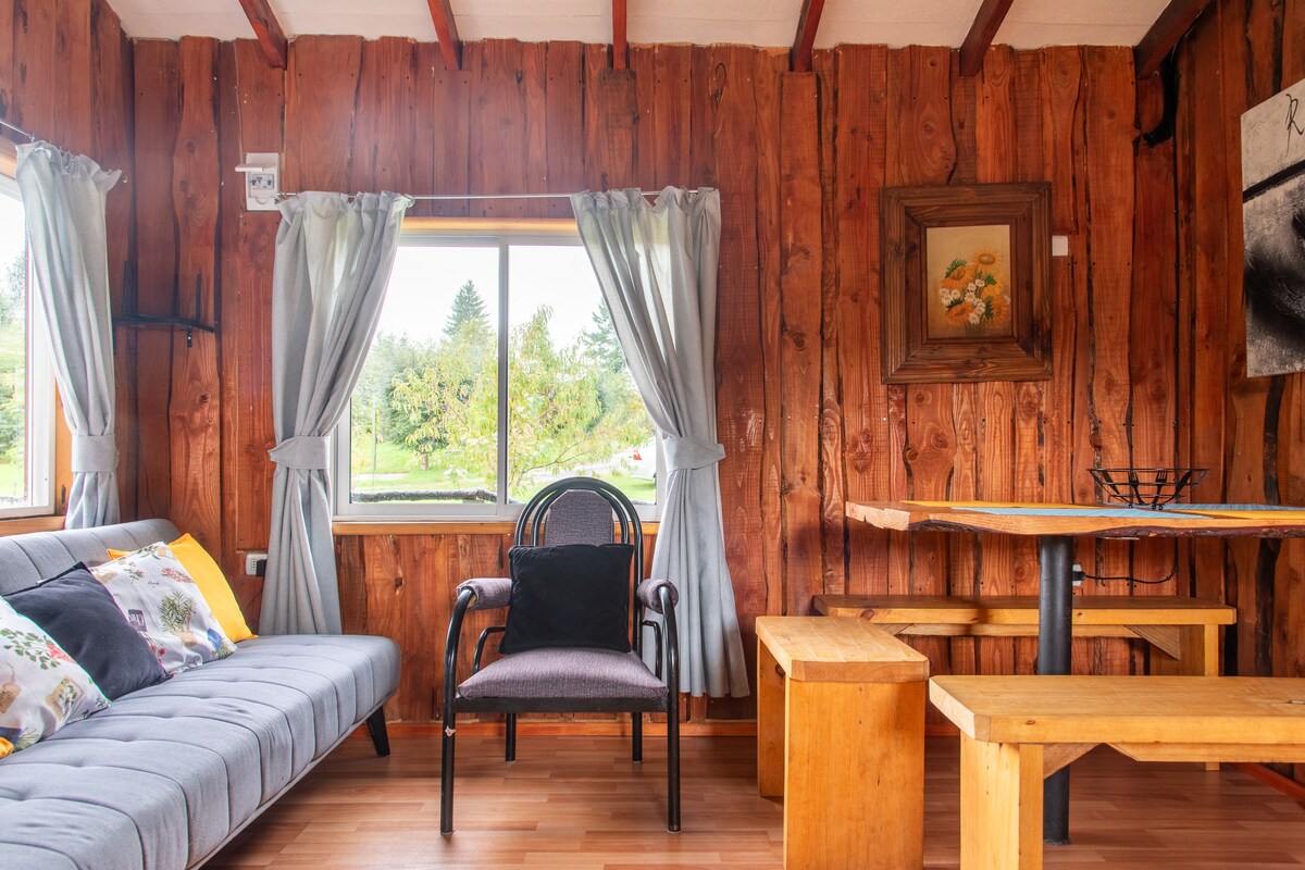 Beautiful Cabin in the Forest, located in the Lefún area between Villarrica and Pucón. It offers a stunning view of Villarrica Volcano, surrounded by native forest and birds. Every day you can hear Loicas and Chucaos. Fully equipped so you can enjoy your stay, disconnect, and relax. A lovely stream runs through the property. We recommend taking nighttime photos of Villarrica Volcano next to the wood stove with the panoramic view our cabin offers. We are sure you will love it!