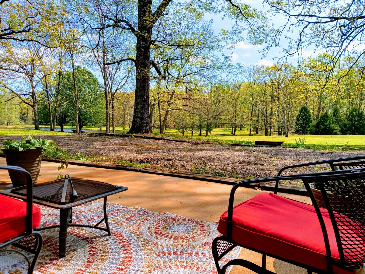 Great for traveling workers, or get-a-way. (Note: pond is currently very low due to a very dry season.) This cabin is just over 400 sqft- has a Queen bed, living room has a Futon couch (futon is a full size mattress, ideal for small children) Furnished kitchen, wifi, Amazon prime on 2 TVs. Great location! 8 minutes to Tennessee river/boat launch. 5 minutes to golf course, 15 mins to Shiloh National park, and 25 minutes to Pickwick landing state park. This is one of 2 Cabins behind Host's house.