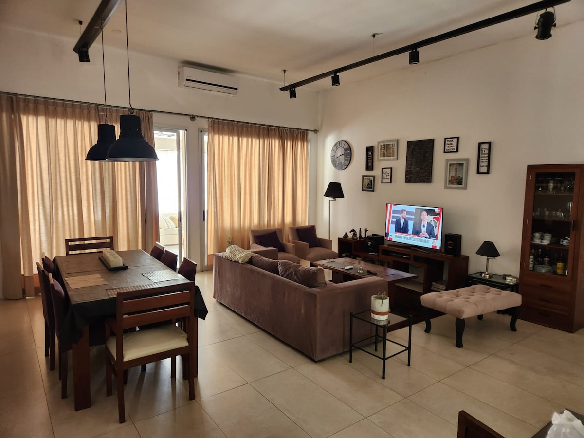 Spacious family home to accommodate up to 5 people comfortably and with the possibility of accommodating up to 7 people via sofa bed. It is located in the middle of Escobar, has easy access from the main routes and 100 meters of business open 24hs. It has double patio, roofed garages for two cars and two uncovered garage. For people who visit us for work reasons, the speed of the Wifi is 300 symmetric megas and we offer to make an invoice if necessary.