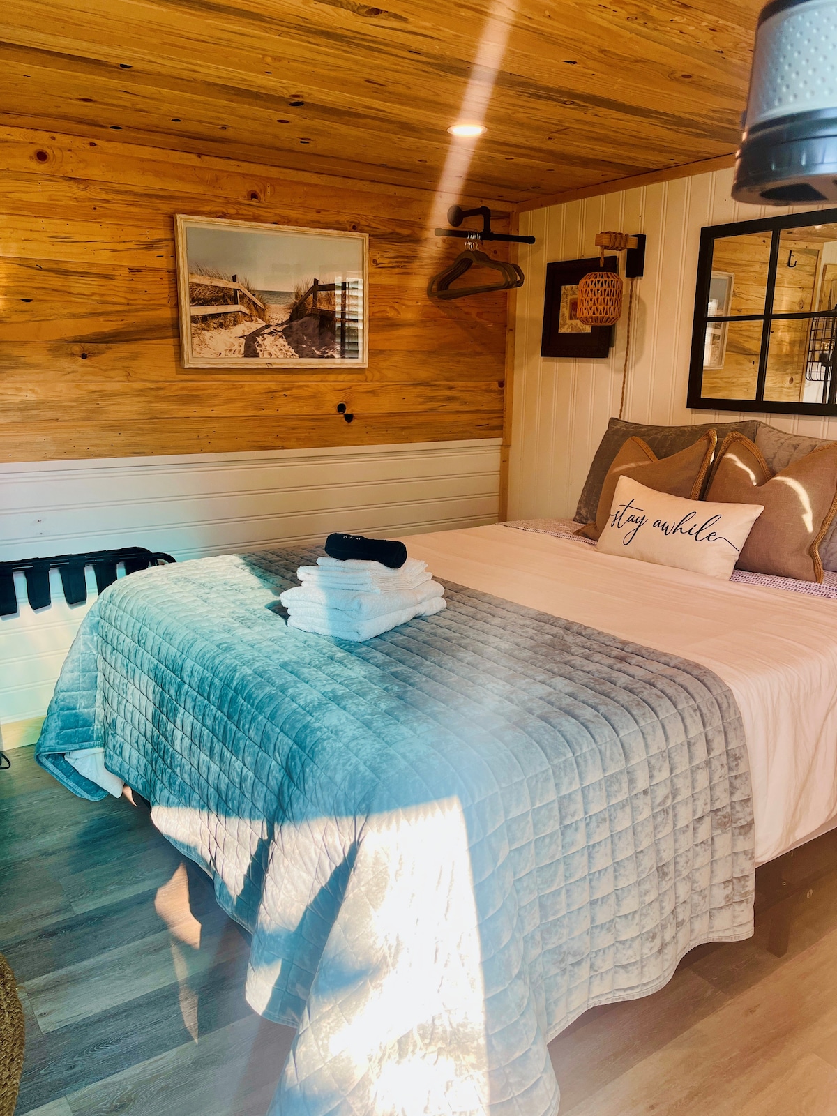 Have you ever wanted to try out a Tiny house? Want to stay in Tampa? This is the listing for you. This is a THREE BEDROOM tiny house! It has a queen sized bed, and two king-sized beds, (or they can split into four twin sized beds!) Our kitchen has all the amenities of a regular kitchen! The bathroom has Laundry, and shower with Endless Hot Water! Outside you’ll find a Grill and outside seating! We are 15 minutes from the airport! We’re sure you’ll enjoy our beautiful 35 foot not-so-tiny home!