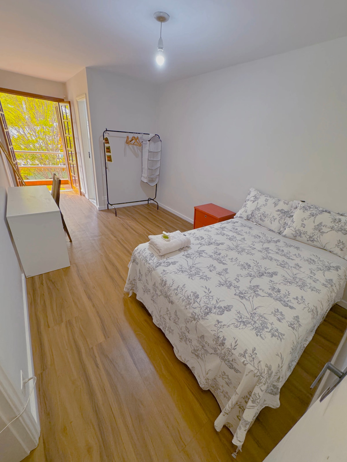 Stunning penthouse within a beautiful house in the neighbourhood of Sumaré, São Paulo. The large wooden deck terrace offers an incredible view over the Pacaembu valley, making this space truly unique. The apartment is spacious, comfortable, and perfect for 2 guests, with a private entrance. Enjoy the shared garden and pool with stunning views. Lie back and watch the sky—how often do you get the chance to relax like this? Daily room and cleaning services are also available