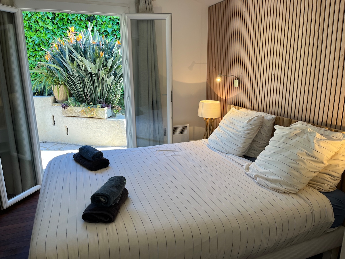 Profitez d'un appartement élégant , de deux pièces, au cœur du village animé et festif de Ramatuelle, à moins de 5 minutes en véhicule ou navette, des mythiques plages de Pampelonne et à 9 kms de Saint-Tropez. En pleine saison d’été, vous bénéficiez de tous les commerces et restaurants dans une rue semi piétonne , arborée et verdoyante, en toute sécurité. Stationnement gratuit à proximité. L’appartement est équipé d’un dressing dans la chambre et d’un placard à chaussures dans l’entrée