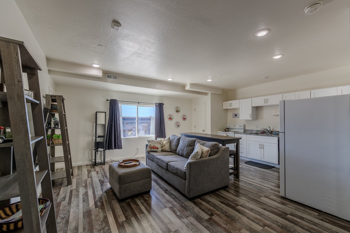 Near Antelope Island, Hill Air Force Base, Salt Lake City and Ogden, UT. Clean, natural living apartment. This guest suite boasts 1 bedroom, 1 bathroom and a full kitchen. Imagine yourself walking into a clean, natural, relaxing pace after enjoying nearby hiking, mountain biking, rock climbing or a day out at our local favorite, Antelope Island. We feature a private entrance and driveway parking.